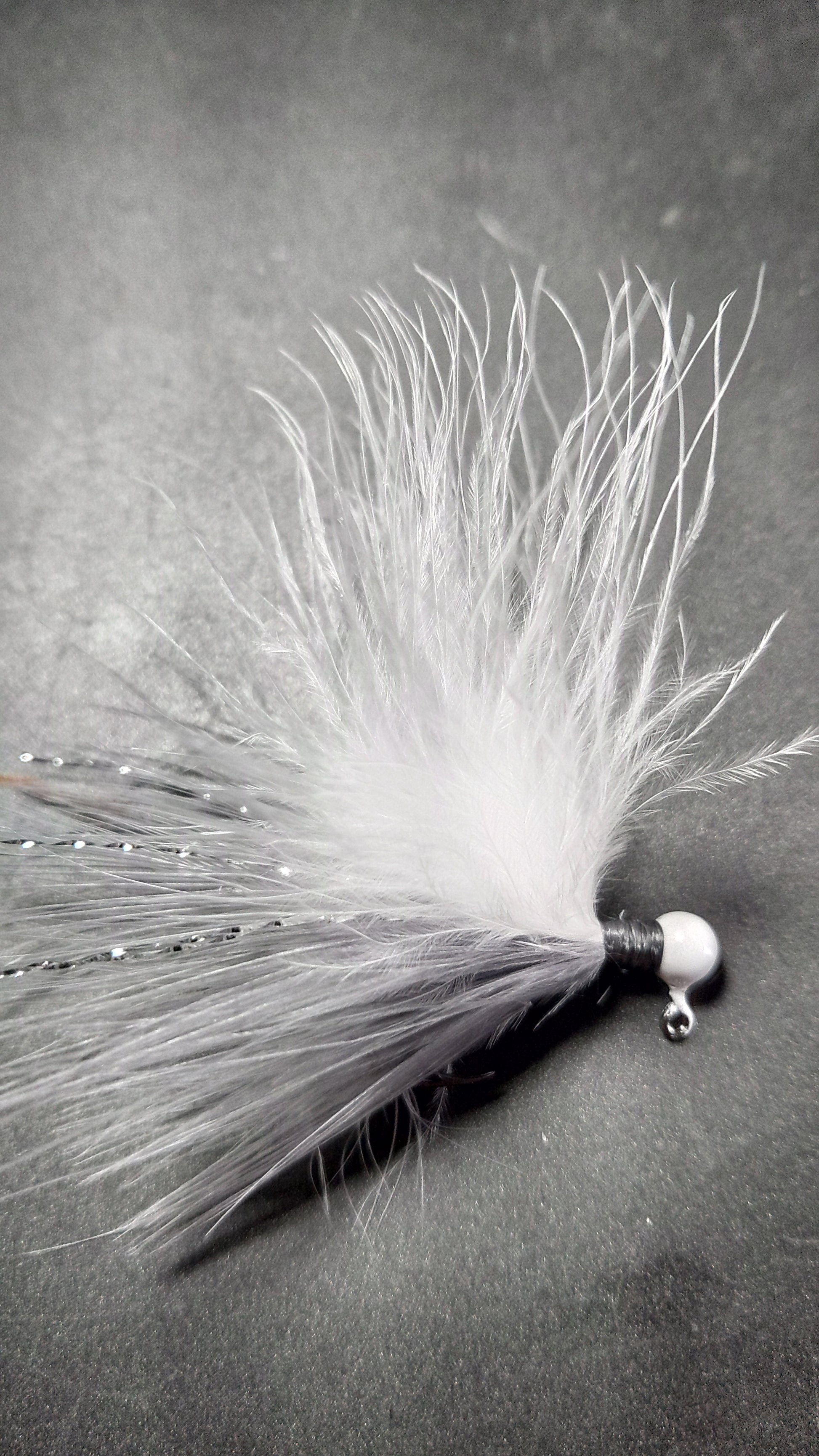 Hand-tied Marabou Jigs. White Powder Coated Head. Ready to hit your favorite fishing hole!!